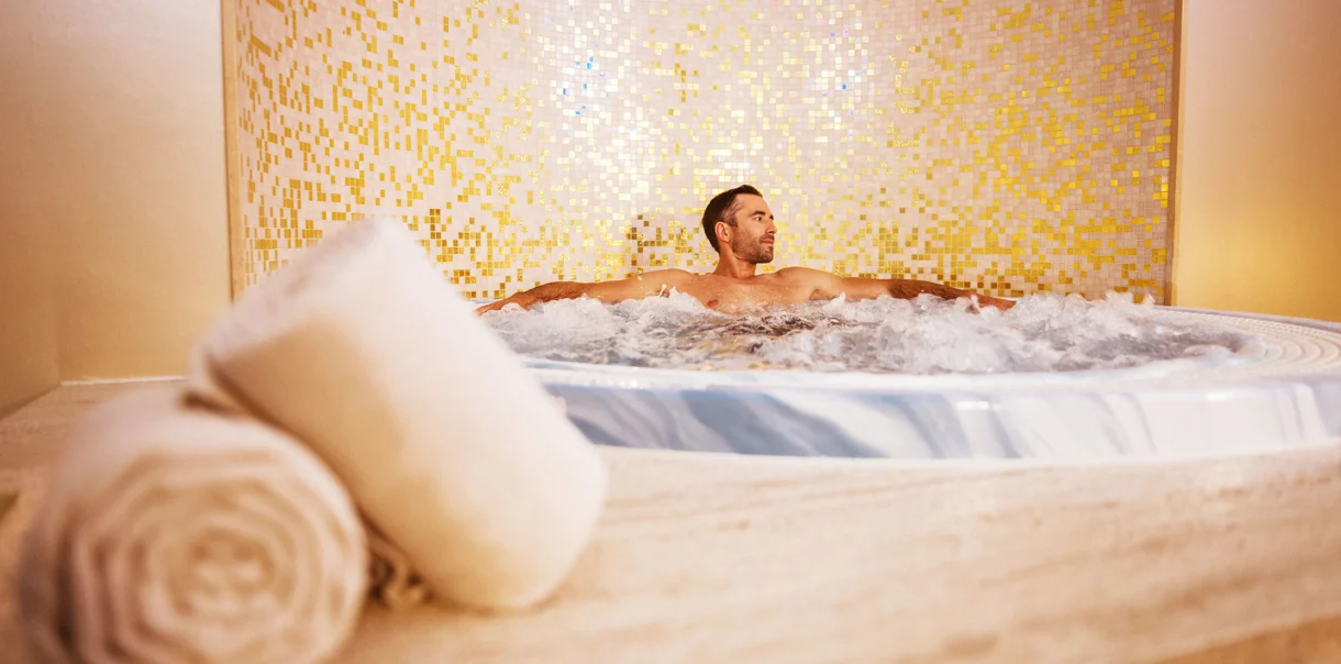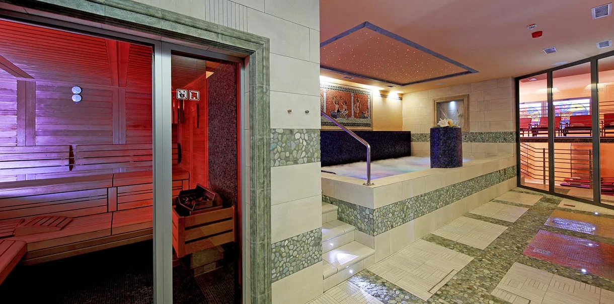 Zur Auswahl stehen römisches Dampfbad, trockene finnische Sauna, Infrarotsauna, Kräutersauna, eisiger Moment und nasse Grotte. Für eine vollkommene Entspannung überlassen Sie sich einer Wassermassage im Spa Whirlpool. Am Ende erholen Sie sich noch im Entspannungsraum oder auf der Terrasse.