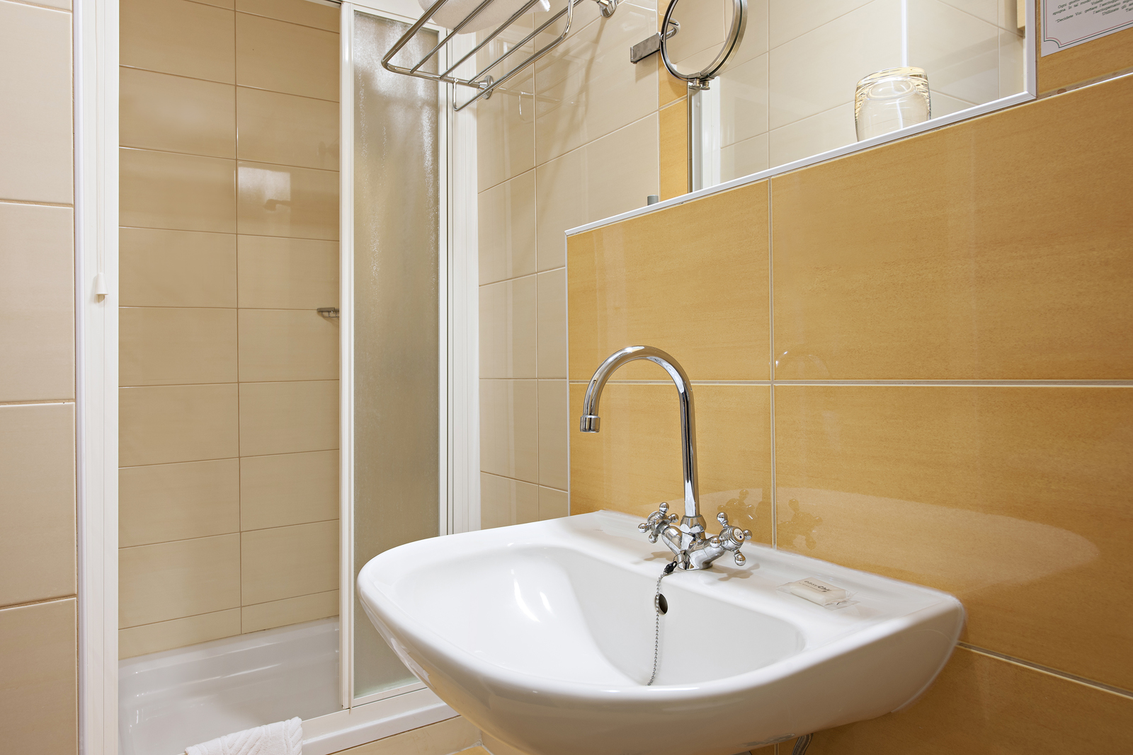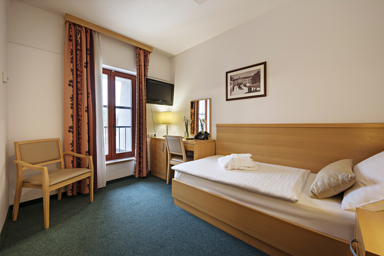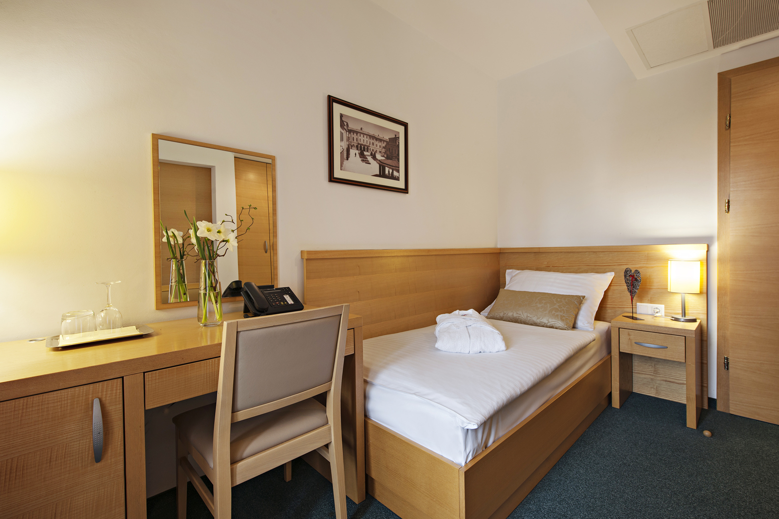 Gemütliches Einzelzimmer mit Einzelbett (90x190 cm) und Parkblick. Im Zimmer mit einer Größe von 12,9 m2 befindet sich ein Badezimmer mit Dusche und WC, ein Schreibtisch.