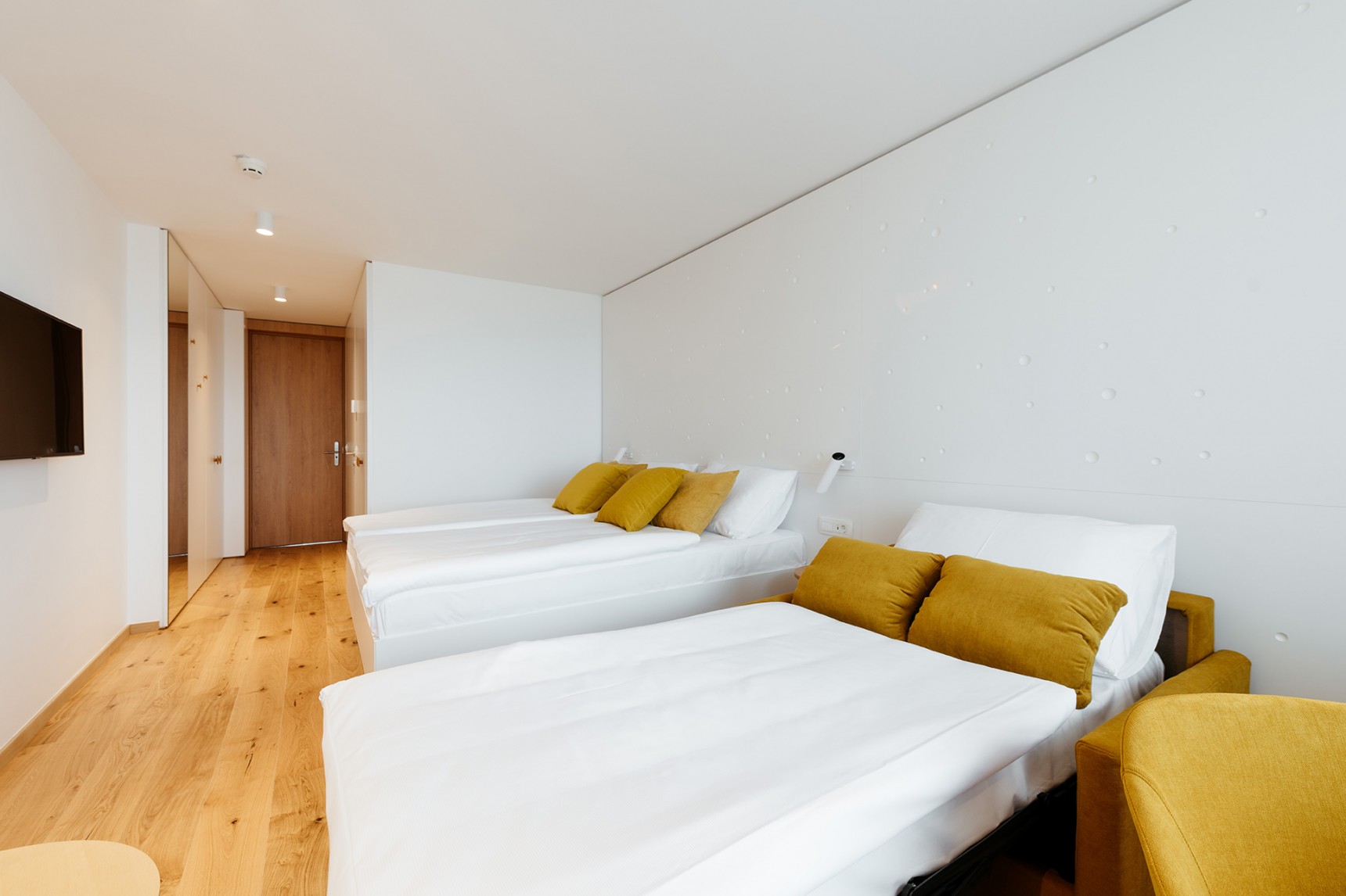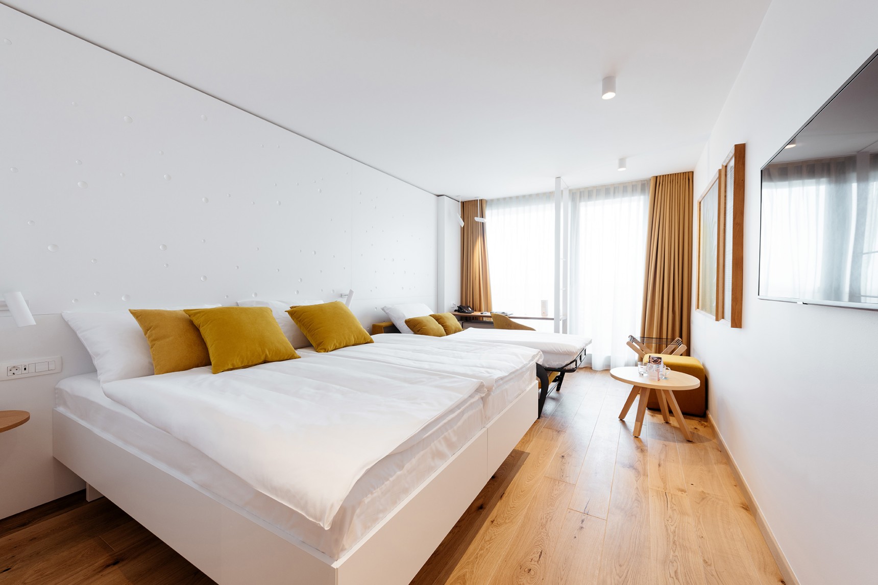 Gemütliches deluxe Doppelzimmer mit Doppelbett der Größe 180 cm oder zwei getrennten Betten jeweils der Größe 90 cm. Im Zimmer mit einer Größe von 23,5 m2 befindet sich ein Badezimmer mit Badewanne und WC, ein Schreibtisch und Einsitzer.