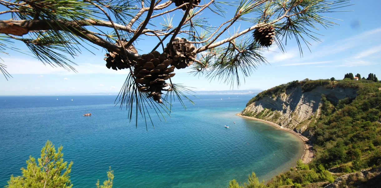 Der charakteristischste Teil des Landschaftsparks Strunjan ist die teilweise bis zu 80 Meter hohe Klippe von Strunjan, die zusammen mit dem bewachsenen Rand und dem 200 Meter langen Meeresstreifen darunter zum Naturschutzgebiet erklärt wurde. Die Steilwände und der Kiesstrand am Fuß der Klippe sind zur Gänze den natürlichen Prozessen überlassen, wobei Meer, Regen und Wind unermüdlich die bröckelnden Gesteinsschichten umwandeln und ihnen neue Formen verleihen. Foto: ©Ubald Trnkoczy