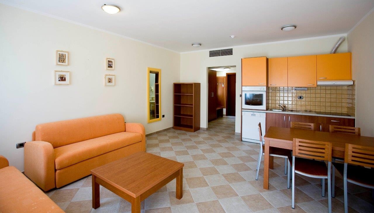 Im Apartment befinden sich: Klimaanlage, Geschirrspüler, SAT TV und Telefon, Haartrockner Das Apartment besteht aus: Wohnzimmer und 2 Schlafzimmer, 6 Betten und 2 Zusatzbetten, Badzimmer mit Badewanne, Küche, Terrasse oder Balkon. Apartment Grösse: 62 m²