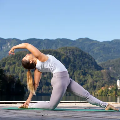 Surya Namaskara oder der Gruß an die Sonne ist eine Reihe von Körperhaltungen, die den Körper aufwärmen, stärken und seine Flexibilität erhöhen. Jede Bewegung oder jeder Übergang von einer Position zur nächsten wird mit der Atmung koordiniert - Ein- oder Ausatmung, immer nur durch die Nase. Es gibt mehrere Varianten dieser Übung, wir stellen Ihnen die Grundversion dieser klassischen Sequenz vor. Der Gruß an die Sonne kann als Aufwärmübung für weitere Übungen ausgeführt werden oder als eigenständige Übung, wenn man nicht viel Zeit hat, aber trotzdem etwas gutes für sich tun möchte. Schon wenige Wiederholungen dieser Sequenz bewirken einen großen Unterschied in unserem Wohlbefinden. Führen Sie diese Übung zum Aufwärmen und für das Kardio-Training in einem schnelleren Tempo durch, zum Aufbau der Ausdauer und zur Stärkung der Muskeln in einem langsameren Tempo.