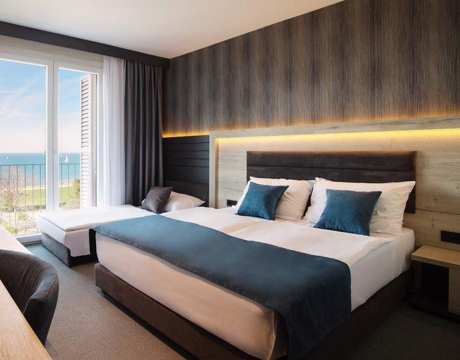 Zimmerausstattung: Badezimmer mit Dusche, Haartrockner, Klimaanlage, Telefon, Sat-TV. Zimmergröße: 23 m2 Bettgröße: 1 Doppellbett 160 x 200 cm + ausziehbare Couch 90 x 200 cm Das Zimmer bietet Platz auf Zusatzbett für ein Kind bis 15 Jahre kostenlos zur Verfügung.
