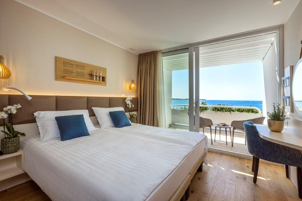 Zimmer auf der Außenseite des Hotels mit Blick auf das Meer. Zimmerausstattung: Balkon, Sat-TV, Telefon, Radio, Minibar, Klimaanlage , Schreibtisch, Badezimmer - Dusche, Haartrockner, Pflegepackung, Minibar, Safe, Weckservice / Wecker. Zimmergröße: 24 m2 Bettgröße: 1 Doppelbett 160 x 200 cm