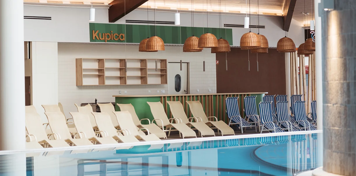 Die Bar im ersten Stock des inneren Thermalparks Terme 3000 bietet eine große Auswahl an alkoholfreien und alkoholischen Getränken. Die Bar bietet auch einfache Snacks an.