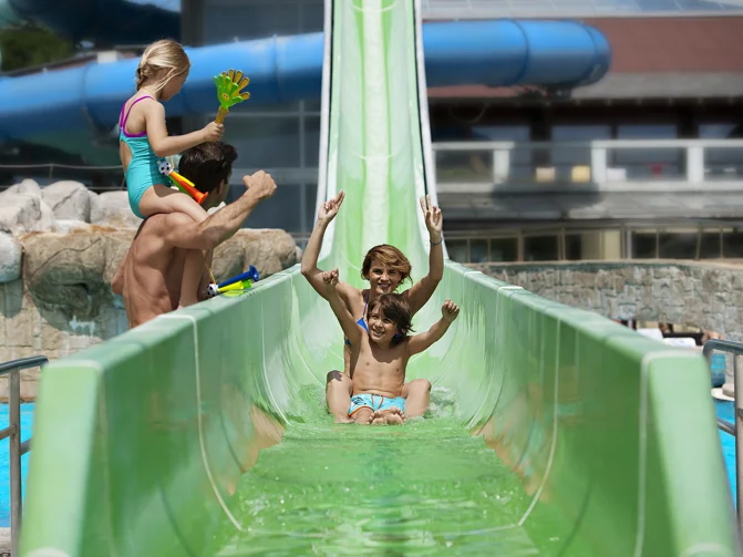 - Familien-Wasserrutschen (2 außen, 1 innen)