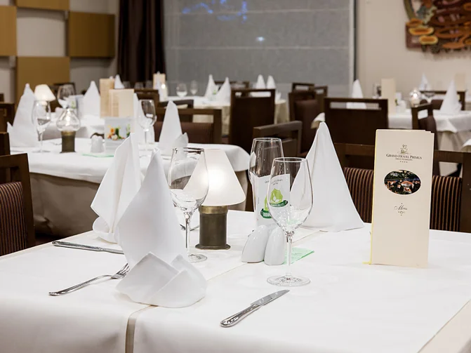 In der Terme Ptuj begleitet ein Hauch Hedonismus des alten Roms Ihre Gäste auch durch das kulinarische Angebot. Genießen Sie die edle Weintradition der Weinkeller von Ptuj bei einem exklusiven Weinabend oder bereichern Sie Ihr Festessen mit einer verfeinerten Weinverkostung. Das Restaurant Primus mit seiner großen Terrasse bietet ein sonniges und entspanntes Ambiente für Events am Tag, das Flair des Klubs Gemina XIII begeistert Ihre Gäste vor allem am Abend und in der Nacht.