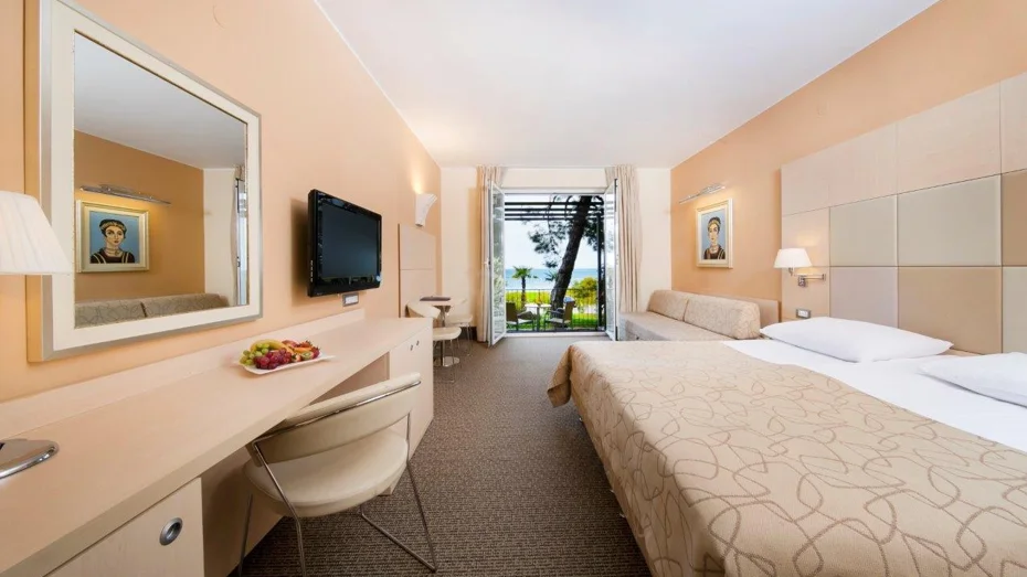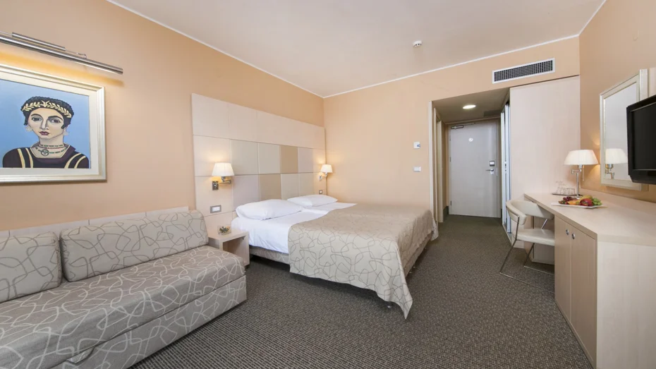 Room Facilities: balcony, telephone, satellite TV, bathroom with shower, hairdryer, air conditioning, minibar, safe. Room size: 31 m2 Bed size: 1 double bed + fold-out couch This room can accommodate one child on extra bed under 15 years of age free of charge.