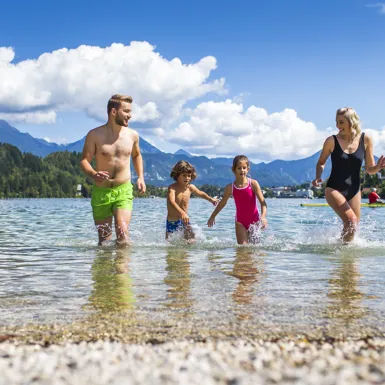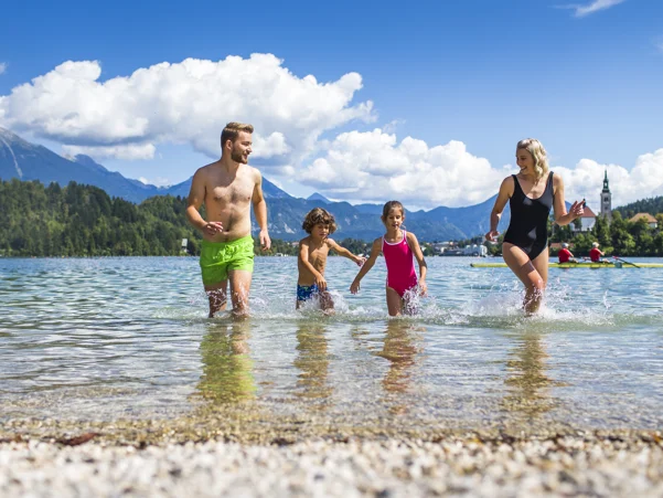 Swim in Lake Bled! The Velika Zaka Beach with a restaurant and bar is located at the edge of the campsite. Bathers can also bathe at the Castle bathing area. In the colder months, you are invited to Waterpark Wellness Živa in the Rikli Balance Hotel, which offers thermal pools and an indoor slide.