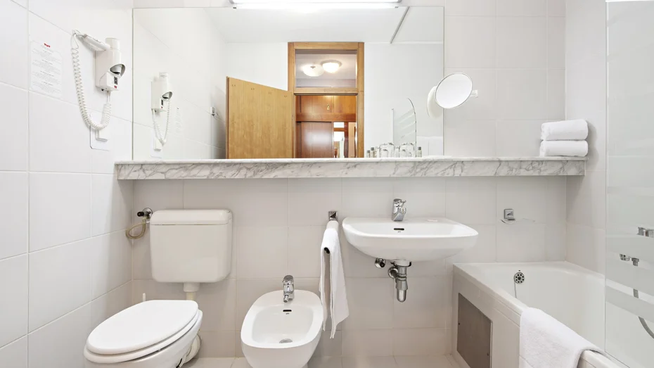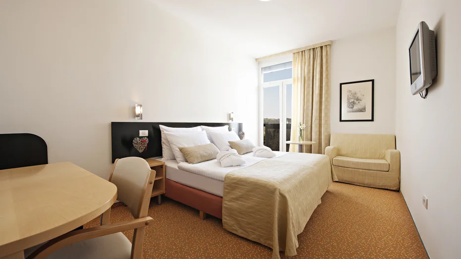 Comfortable double room with a double bed 180 cm wide or twin beds 90 cm wide. The 23.5 m2 room features a bathroom with a bathtub and toilet, a writing desk and an armchair (additional bed).