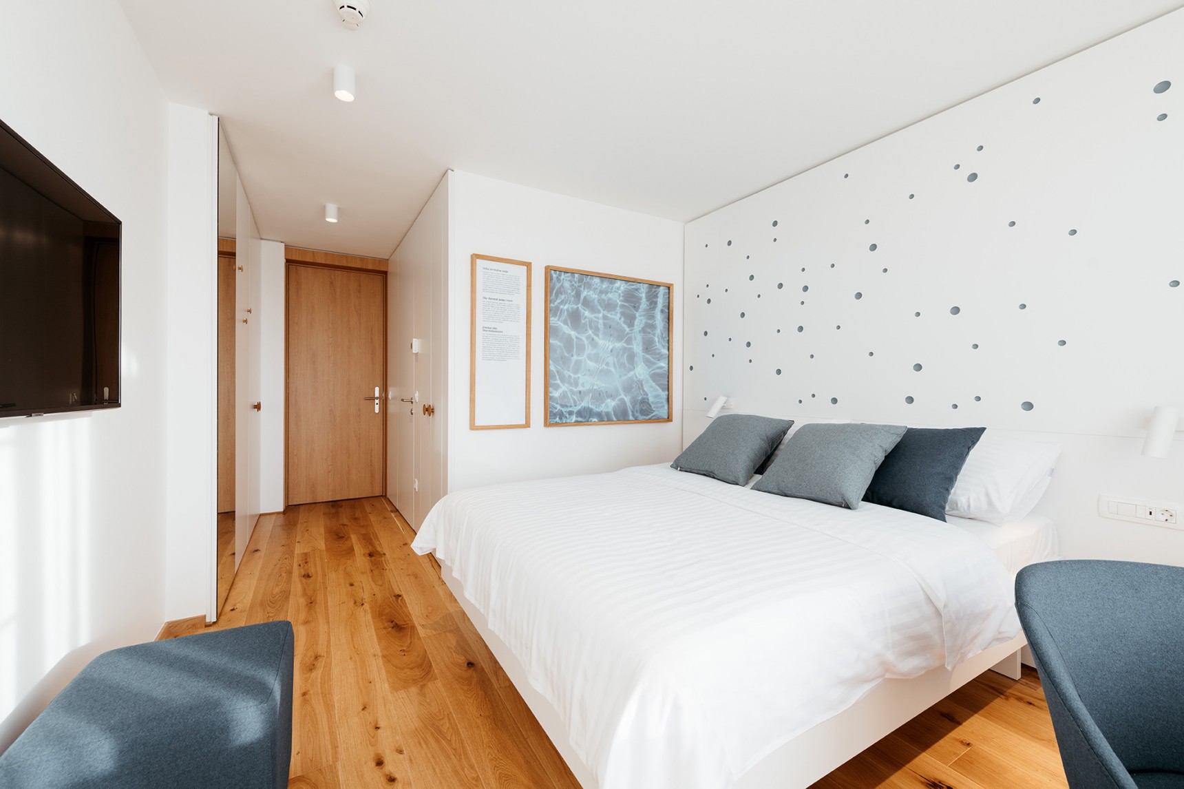 Comfortable deluxe single room with a queen-size bed (160 cm wide) and park view. The 16.5 m2 room features a bathroom with shower and toilet, a writing desk and a balcony.