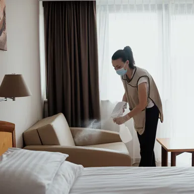 U hotelskoj sobi identificirali smo 8 površina s kojima gosti imaju najviše kontakta te se one dodatno i dubinski čiste i dezinficiraju.