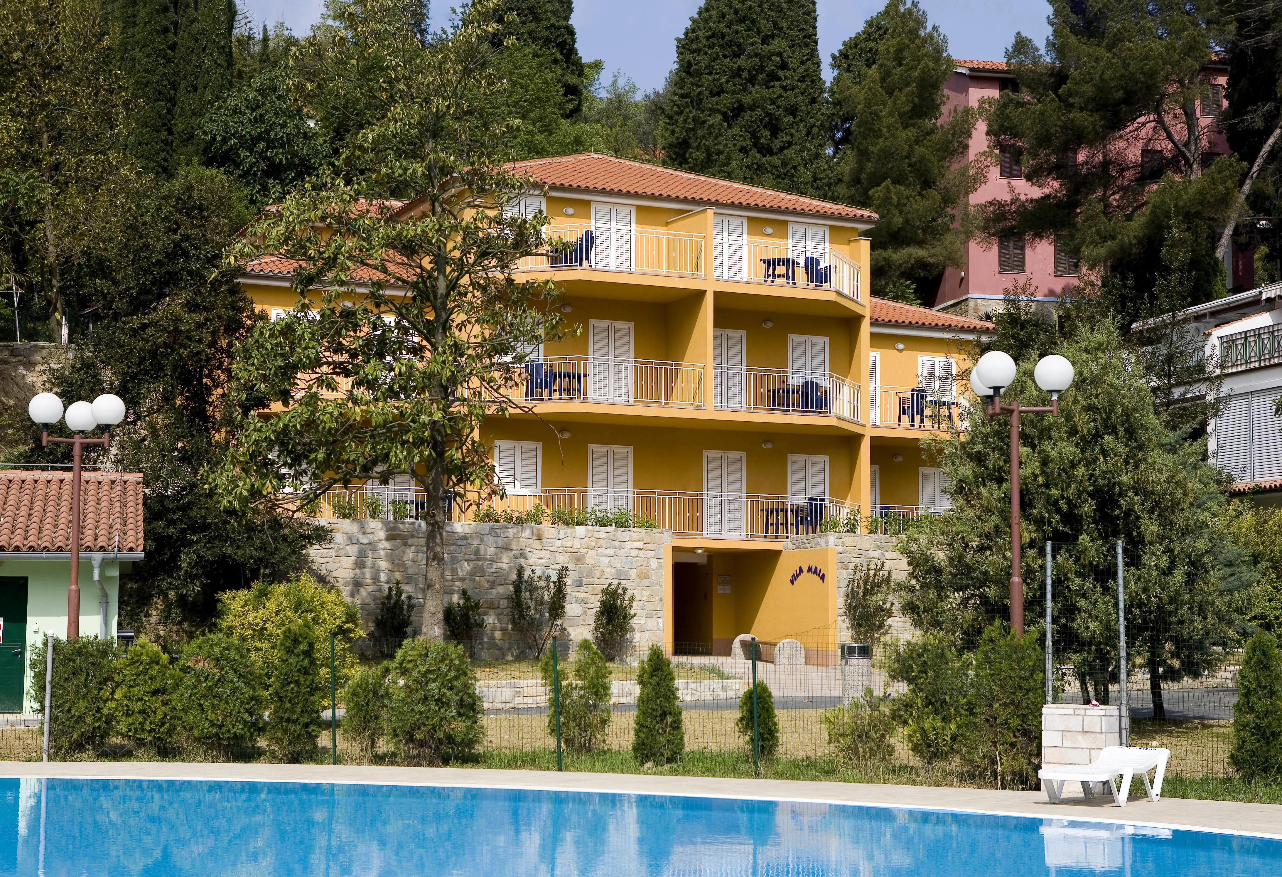 Moderno uređeni Apartmani Vila Maia posebno su pogodni za obitelji s djecom, jer vas samo nekoliko koraka dijeli od uređene travnate plaže! Osim ugodnog hlada u okrilju velikih borova, uvjerit će vas i vanjski bazen s morskom vodom pogodan za vodene nestašluke svih članova obitelji, dječji bazen za najmlađe i mjesto za brojne aktivnosti na svježem morskom zraku.