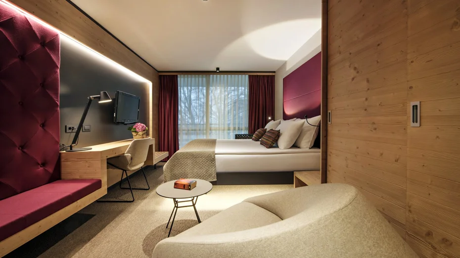 Obnovljena prostrana dvokrevetna soba s balkonom i pogledom na park. U sobi veličine 22-26 m2 s dva ležaja širine 90 cm ili jednim ležajem širine 180 cm nalazi se pisaći stol, fotelja na izvlačenje (kao pomoćni ležaj veličine 70 x 190 cm), grijač za pripremu čaja ili kave, besplatni Wi-Fi, kupaonica s kadom ili tušem i WC. Sve sobe obnovljene su u travnju 2017. uporabom prirodnih materijala iz obližnjih slovenskih mjesta.