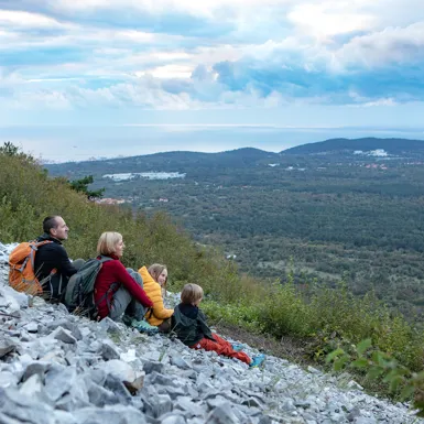 Srednje zahtjevna ruta s usponom, koja može biti pogodna i za obitelji, od startne pozicije Podgorja, gdje možete parkirati automobil, trebat će vam nešto manje od 3 sata hoda. Usput će vas pratiti proljetno planinsko cvijeće: božuri, perunike, blijedožuti ušljivac, kranjski ljiljan i dr. Na vrhu će vas oduševiti pogled na vrhove Kamničke, Julijske, Karnijske Alpe, Dolomite, Ćićariju, Učku i Snežnik. Pogled niže sezat će do Brkina, Ćićarije, krške visoravni, Šavrinskih brda i Jadranskog mora.