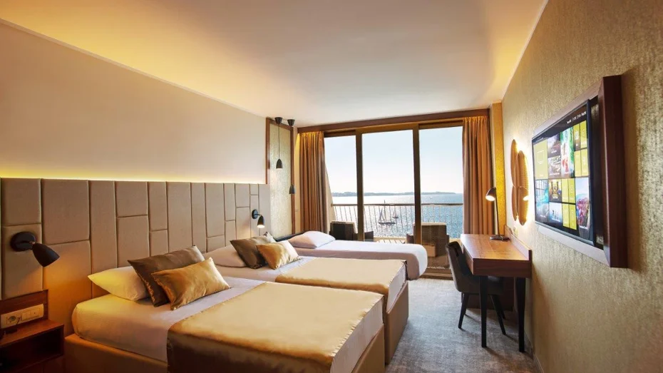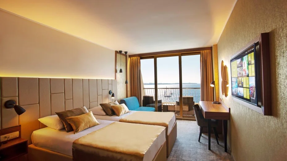 Provjerite raspoloživostSadržaji sobe: balkon, satelitska televizija, radio, telefon, bežični pristup internetu, pisaći stol, minibar, klima uređaj, kupaonica - tuš ili kadu, sušilo za kosu, set toaletnih potrepština, ogrtač, papuče, usluga buđenja / alarm 24-satna usluga posluge u sobi. Veličina sobe: 23 m2 Veličina kreveta: 1 bračni krevet 180 x 200 cm ili 2 kreveta (twin) 100 x 200 cm + pomoćni krevet 80 x 190 cm Ova soba može primiti jedno dijete na pomoćnom krevetu do 12 godina besplatno.