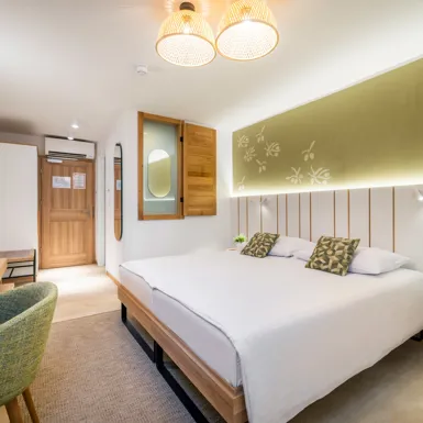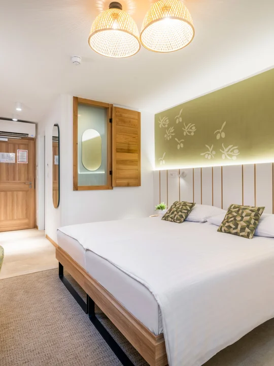 Sobe u znaku maslina u Vili Nimfa pastelnim i prirodnim nijansama zelene mamit će vas među ta monumentalna stabla koja u sebi kriju bezbroj tajni, a na njima su primamljivi zeleni plodovi koji pozivaju da ih uberete.