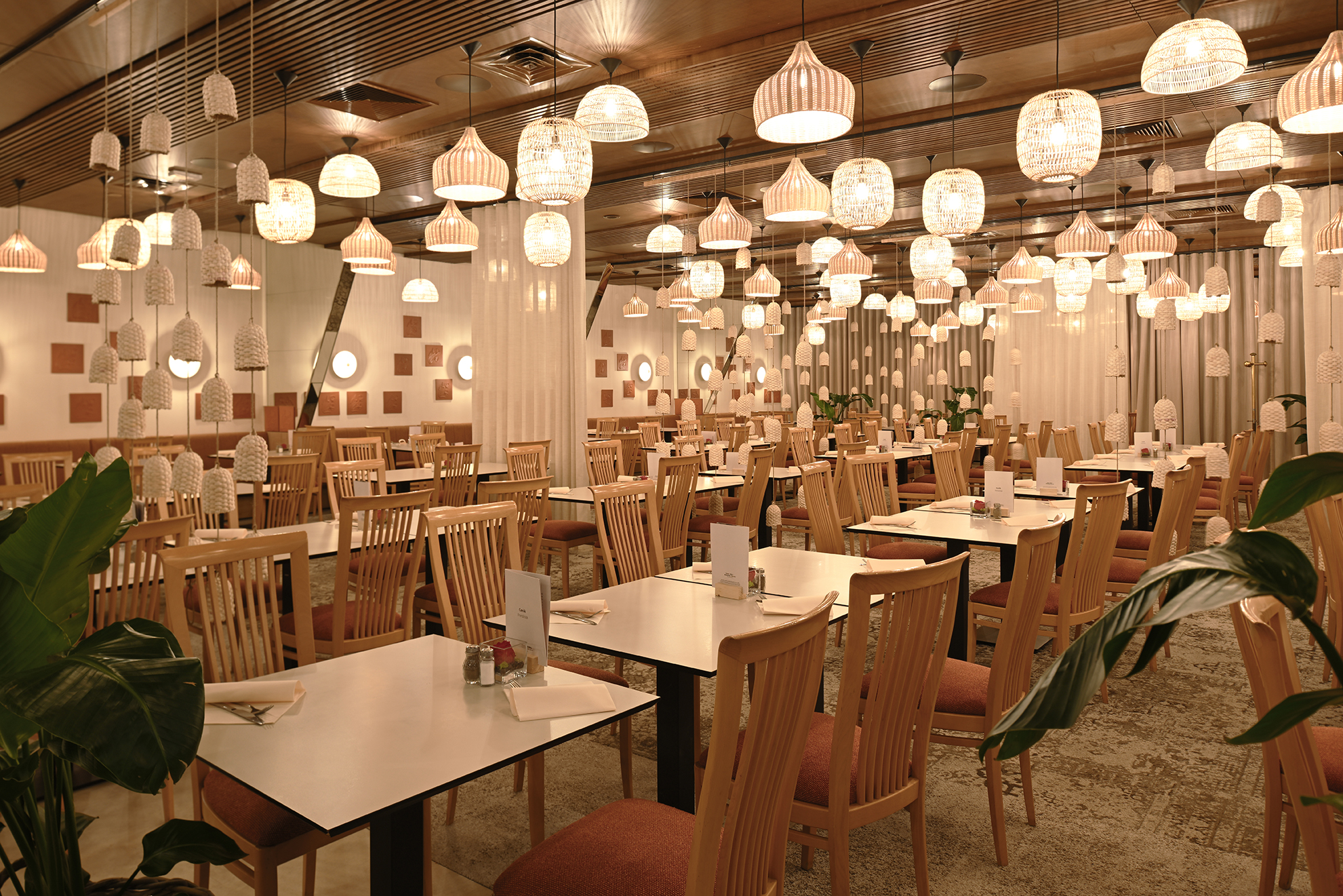 Dobro došli u obnovljeni hotelski restoran Termal, koji može primiti do 350 gostiju. Odjeven je u prirodne nijanse boja, a njegova su posebnost nedvojbeno i atraktivne viseće svjetiljke koje krasi jedinstveni element tradicije rukotvorina - pletivo od slame ili komušine kukuruza. U ugodnom ambijentu restorana svake srijede oduševit ćemo vas prekmurskom večerom, a gosti svaki dan mogu uživati u lokalno obojenoj gastronomiji švedskog stola.