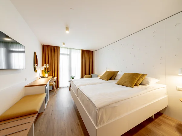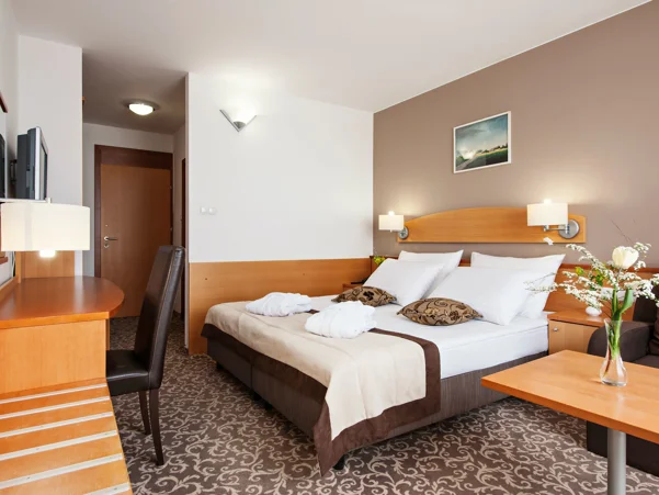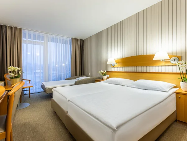 Osim kupanja u hotelskom bazenu, očekuju vas različiti bazeni Termalnog parka Terme 3000. Možete se pridružiti našim vođenim vježbama u bazenima i uz njih ili krenuti u istraživanje bezvremenog Prekmurja biciklom.