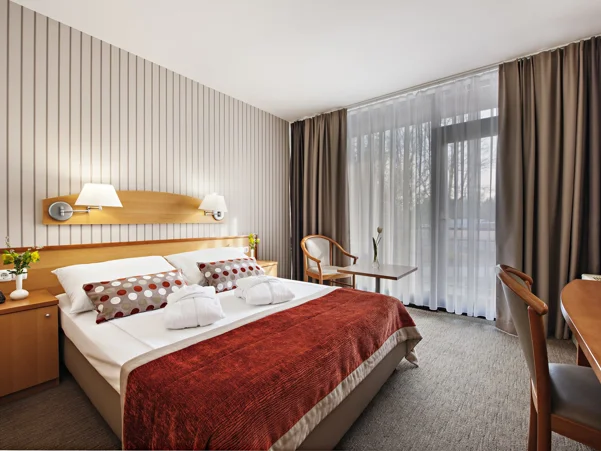Pozivamo vas u Hotel Termal koji se nalazi u središtu termalnih događanja i povezan je s blagodatima naše termomineralne vode. Opustite se u njegovu zagrljaju u unutarnjim i vanjskim hotelskim bazenima te u crnim kupkama. U Wellnessu Thermalium i Zdravstvenom centru Terme 3000 pobrinut ćemo se za vaše dobro osjećanje. Dio hotelskih soba i restoran renovirani su, što hotelu daje dašak moderne udobnosti i topline. Za termalni odmor rezervirajte Hotel Termal!