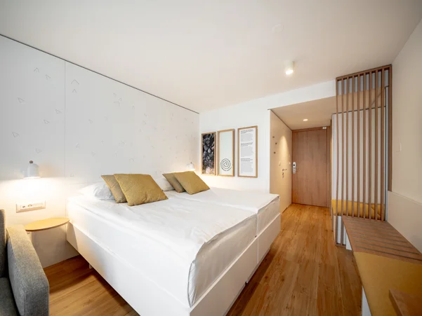 Dio soba - točnije njih 54 u Hotelu Termal u 2025. godini dobilo je osvježen izgled, što je nastavak priče o njegovu jedinstvenom vodenom parku s pričom o harmoniji energija i prirodnih elemenata. Pri obnovi se oslanjamo na priču o našoj blagotvornoj termomineralnoj vodi, četirima osnovnim prirodnim elementima i energiji četiriju različitih kristala - bijeli kvarc, ljubičasti ametist, ružičasti kvarc i crni hematit. Obnovljene 54 sobe pričaju priču o dva kristala, ružičastom kvarcu i hematitu.