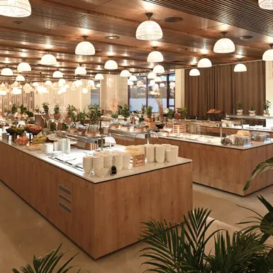 U Hotelu Termal u Termama 3000 očekuje vas osvježeni hotelski restoran odjeven u prirodne nijanse boja. Posebnost opreme restorana nesumnjivo su atraktivne viseće svjetiljke koje krasi jedinstveni element tradicije rukotvorina – prekmursko pletivo od slame, odnosno kukuruzne komušine. Očekujemo vas u ugodnom ambijentu s lokalno obojenom gastronomijom!