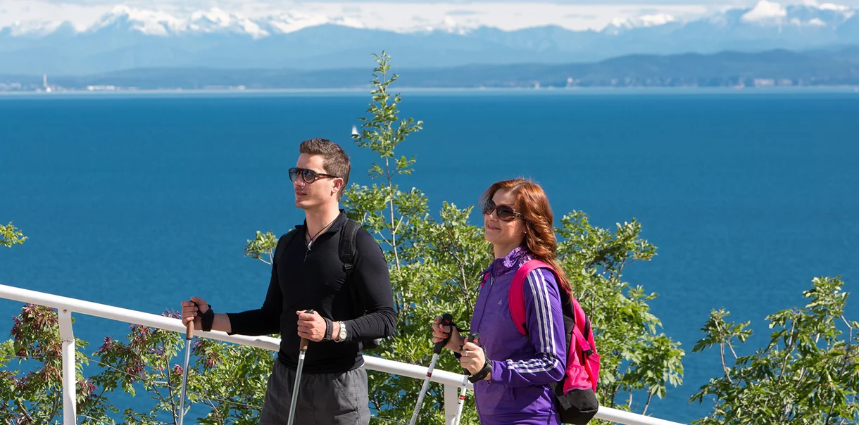 Le persone più attive possono noleggiare i bastoncini nordici e fare una passeggiata attiva nei resort di Bernardin, San Simon e Salinera. La camminata nordica è un’attività estremamente salutare e naturale, durante la quale utilizziamo la maggior parte dei gruppi muscolari, andando così a rinforzare l’intero corpo. Se siete amanti delle passeggiate e delle escursioni in generale, apprezzerete sicuramente anche la camminata nordica. Lo scopo fondamentale della camminata nordica è quello di aumentare l’effetto positivo della camminata utilizzando bastoncini leggeri e, allo stesso tempo, ridurre lo sforzo sul corpo. La postura del corpo durante la camminata nordica è diritta, il che contribuisce positivamente a mantenere la postura corretta, non solo durante l’attività fisica. Inoltre, ha un effetto benefico sulle articolazioni, mantiene la mobilità e la forza fisica, rafforza il sistema cardiovascolare e ha un effetto positivo sul sistema respiratorio. Quasi tutti i terreni possono essere adatti alla camminata nordica, quindi potete sceglierli in base alle vostre capacità e al vostro livello di forma fisica.