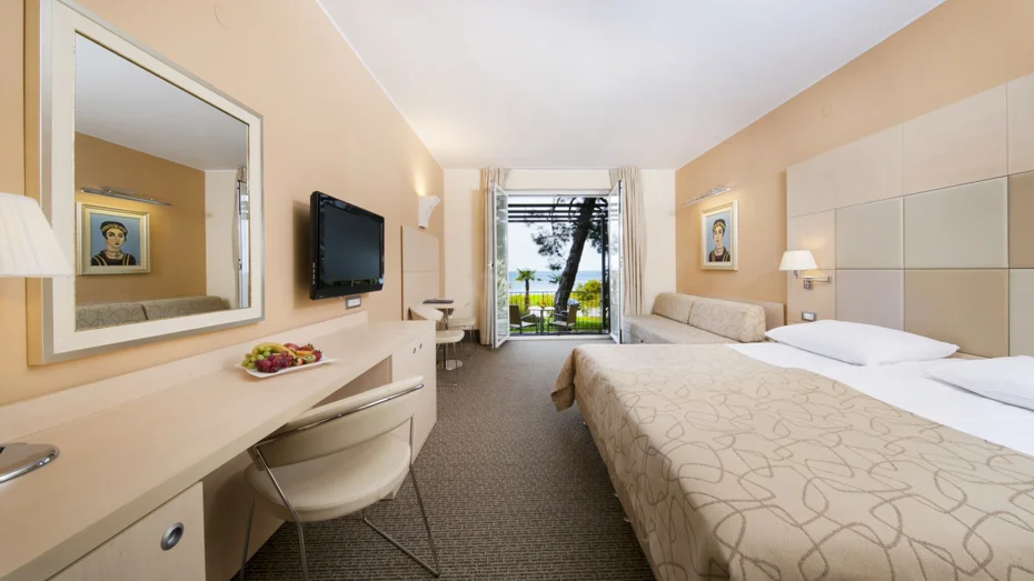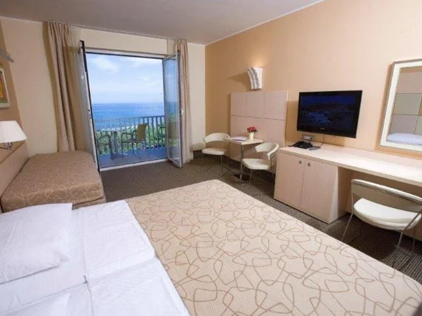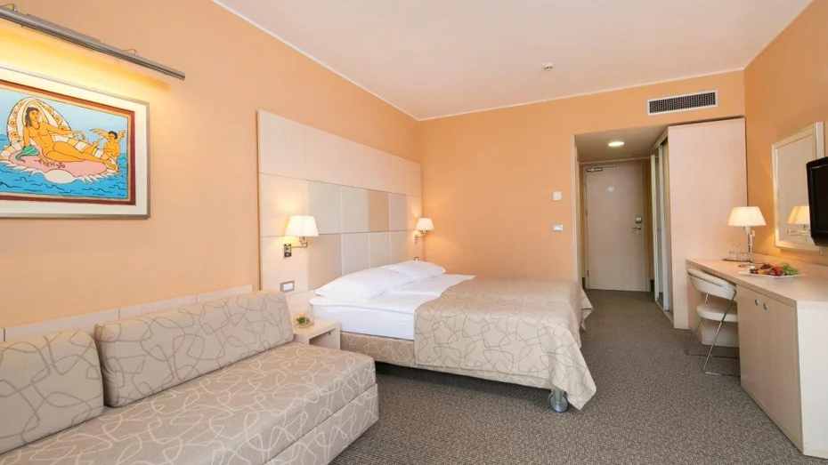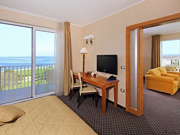 La camera offre: balcone, telefono, TV satellitare, bagno con doccia, asciugacapelli, aria condizionata, frigobar, cassetta di sicurezza. Dimensioni della camera: 31 m2 Dimensione Letto: 1 letto matrimoniale + divano letto pieghevole Questa camera può ospitare gratuitamente due bambini sui letti supplementari fino a 15 anni.
