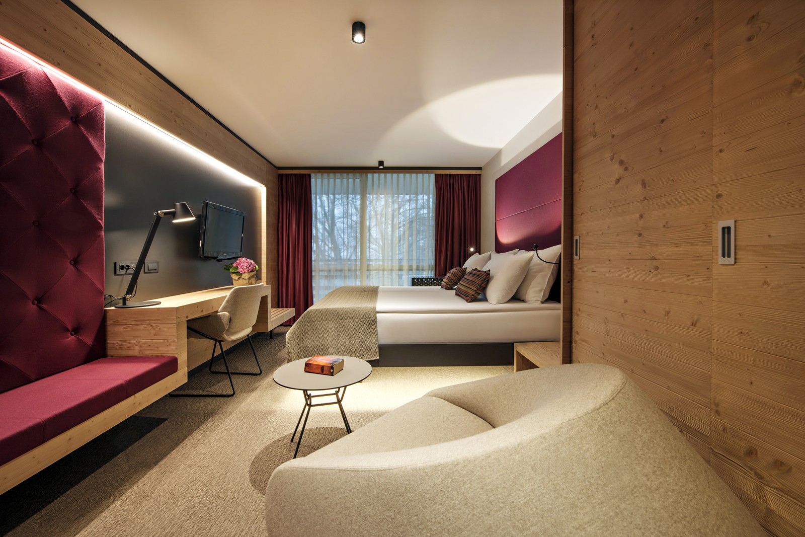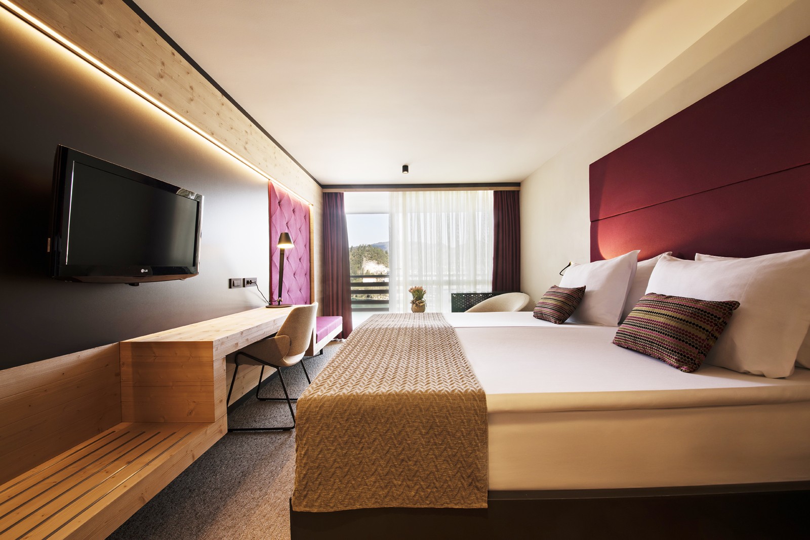Rinnovata e confortevole camera doppia con balcone e vista sul parco. La camera di 22-26 m2 dispone di due letti di 90 cm o un letto di 180 cm, scrivania, divano letto (come letto aggiuntivo 70x190 cm), bollitore per preparare tè o caffè, accesso gratuito ad internet Wi-Fi, bagno con vasca o doccia, toilette. Tutte le camere sono state ristrutturate nell’aprile del 2017 utilizzando solo i materiali naturali ricavati dalle località slovene circostanti.