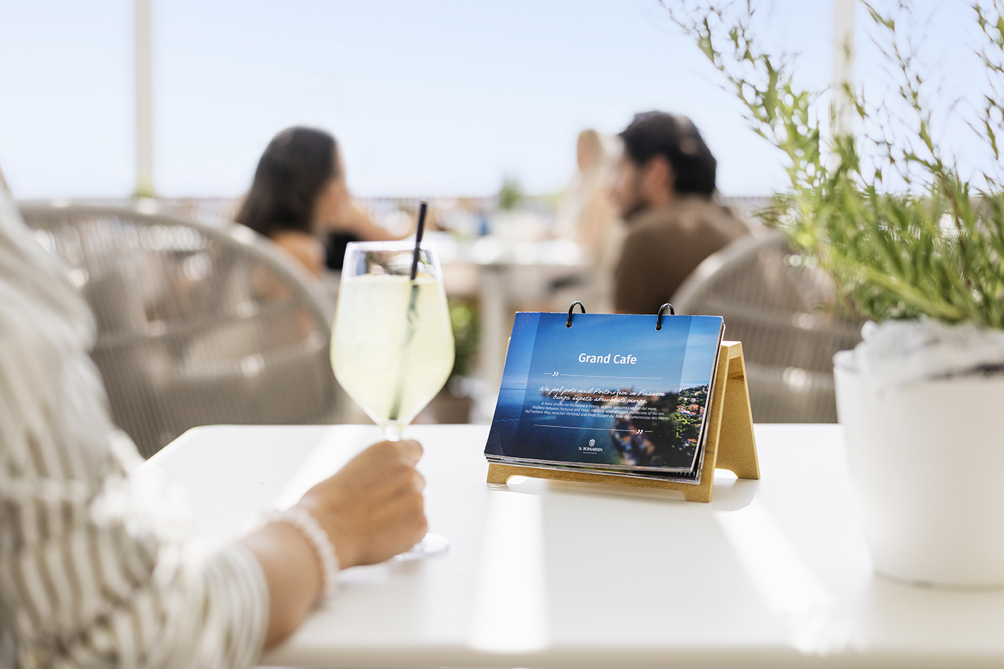 Nel Cafe Grand del Grand Hotel Bernardin ogni ospite può ammirare le viste uniche sul golfo di Pirano. Ideale per rilassarsi o socializzare davanti a una tazza di caffè, un cocktail oppure per assaggiare una delle nostre prelibatezze gourmet, accarezzati dai raggi del sole sull’elegante terrazza rinnovata o avvolti nell’atmosfera di una serata romantica, accompagnati dalle melodie del pianoforte.