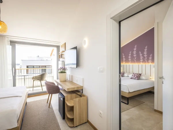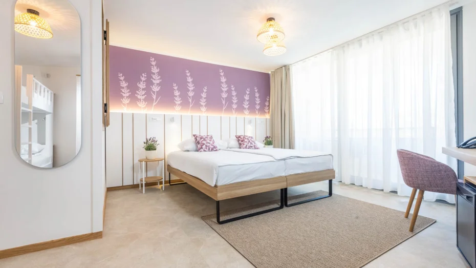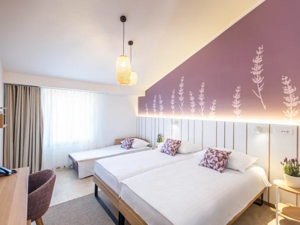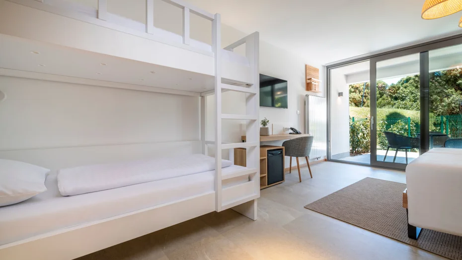 La camera offre: aria condizionata, TV via cavo, telefono, scrivania, bagno con doccia, asciugacapelli, minibar. Dimensioni della camera: 34 m2 Dimensione letti: 1x letto matrimoniale (180 x 200) o 2x singole (90x200) e letto a castello (90x200) o divano (80x190).