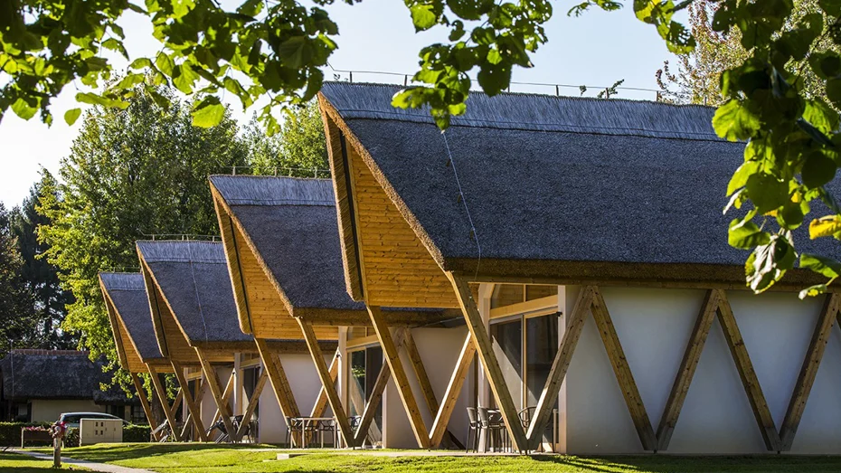 Casetta comoda e spaziosa con un letto largo 180 cm, un letto francese largo 140 cm al piano superiore e un letto supplementare largo 80 cm. La casetta (35,5 m2) è dotata di bagno con doccia e WC, tavola da pranzo e scrivania, letto supplementare e angolo cottura per preparare bevande calde. L’unità vanta anche una bellissima terrazza di fronte alla casetta.