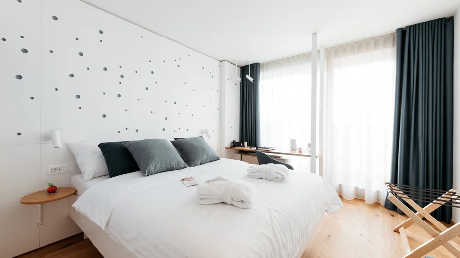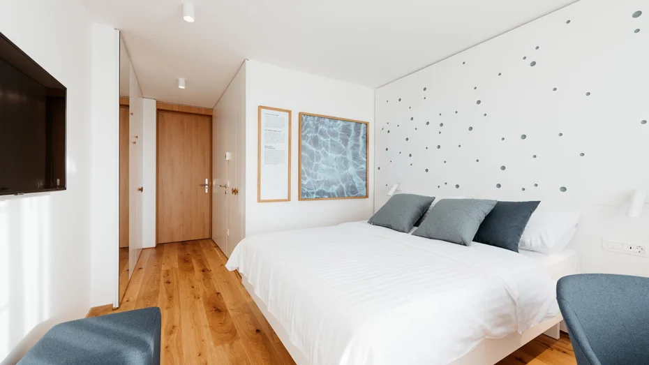 Confortevole deluxe camera singola con letto francese (140 cm) e vista sul parco. La camera di 16,5 m2 dispone di bagno con doccia e toilette, scrivania e balcone.