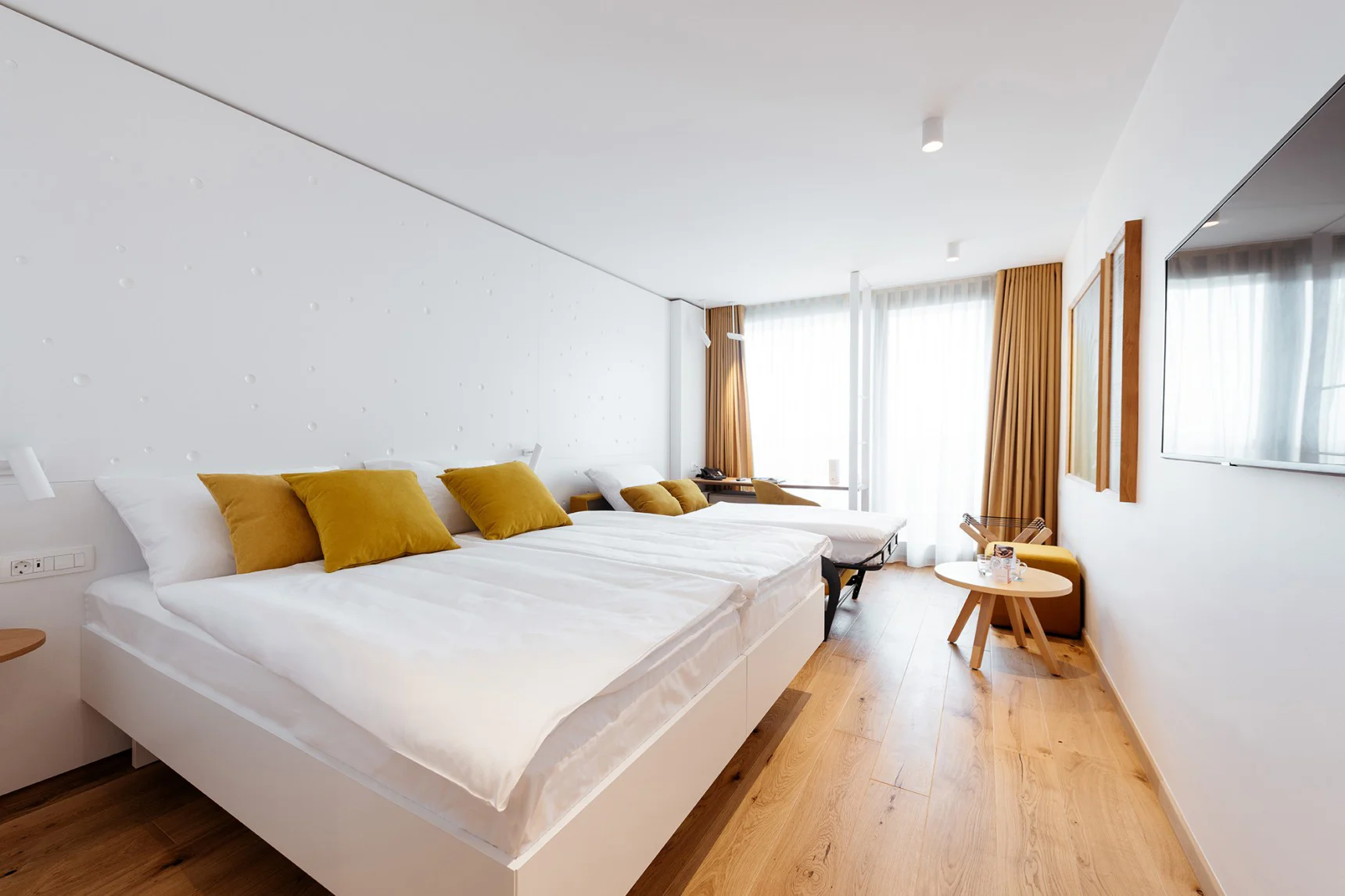 Confortevole deluxe camera doppia con un letto di 180 cm o due letti separati di 90 cm. La camera di 23,5 m2 dispone di bagno con vasca e toilette, scrivania e divano monoposto.