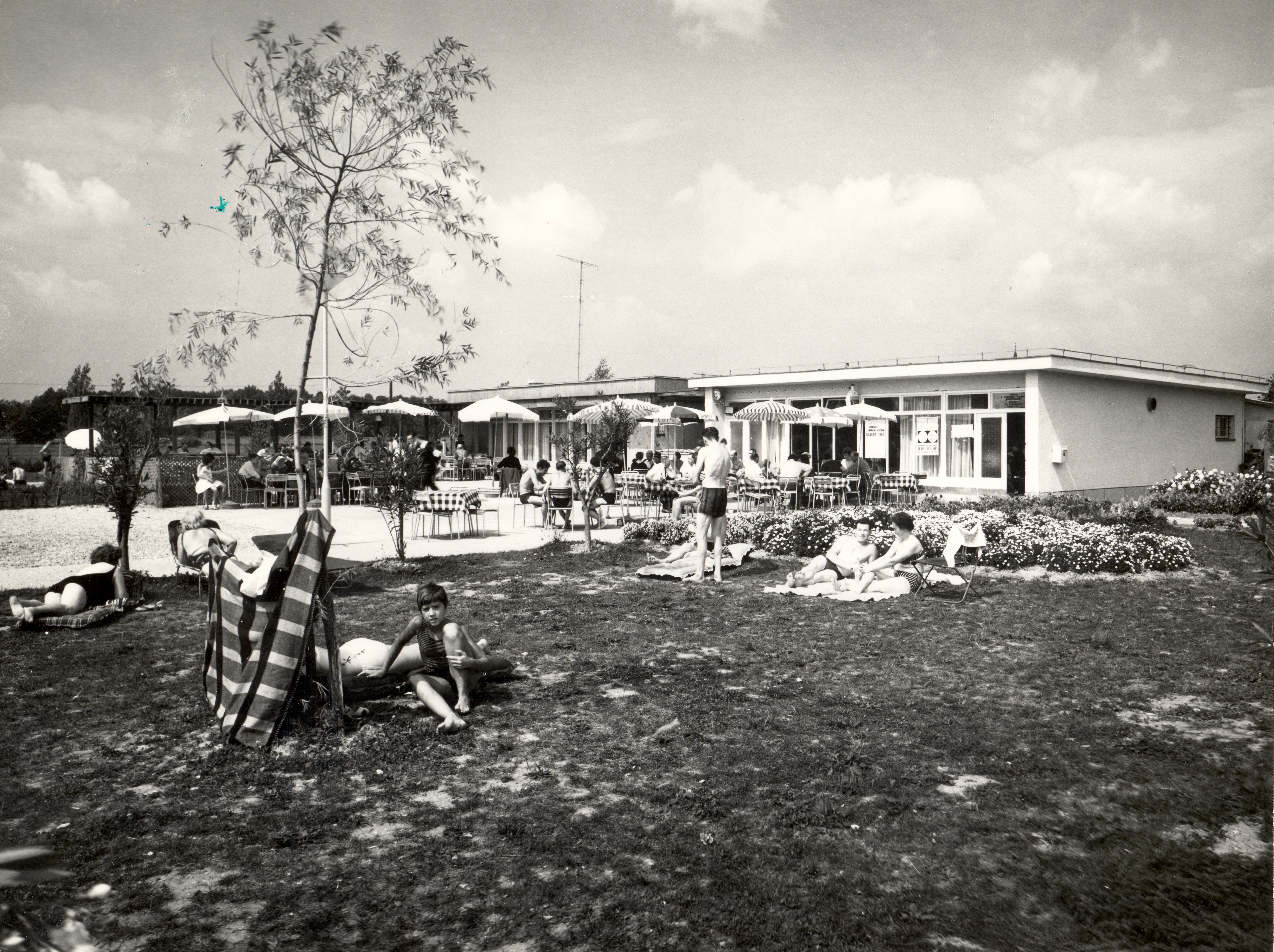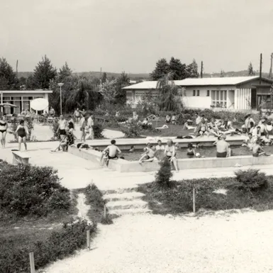 - 1962: 28. julij: prva uradna otvoritev. Zgrajeni so prvi leseni objekti z 8 kabinami in sanitarijami. Gostinsko podjetje Zvezda posluje v improviziranem lesenem bifeju.