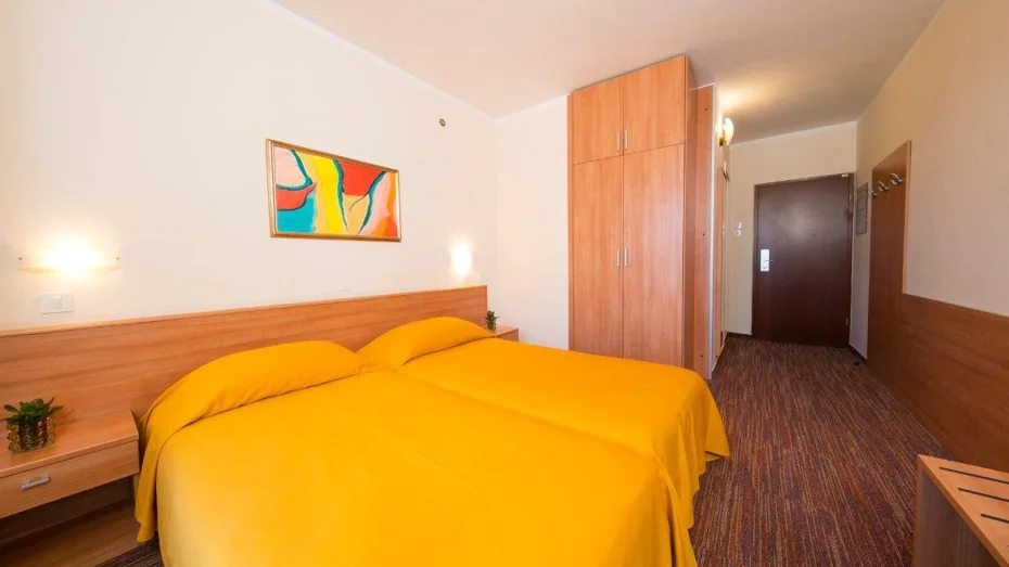 Ponudba v sobi: televizija, telefon, kopalnica s tušem, storitev bujenja. Velikost sobe: 18 m2 Velikost postelje: 1 zakonska postelja 180 x 200 cm