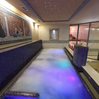 Notranji bazen v Hotelu Halaetum je kot nalašč za vodno zabavo v hladnejših mesecih.