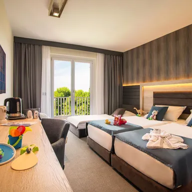 Hotel Haliaetum je družini prijazen hotel. Bivate lahko v družinski sobi, ki imajo ločena ležišča za otroke. Otroke bo na plaži razveselil vodni tobogan, navdušeni pa bodo tudi nad otroškimi kotički, igrali in mini golfom ter mini klubom z jutranjo in večerno animacijo.