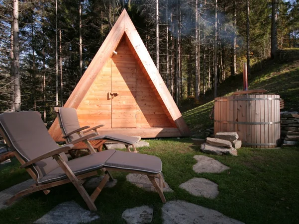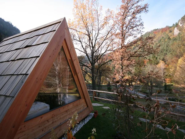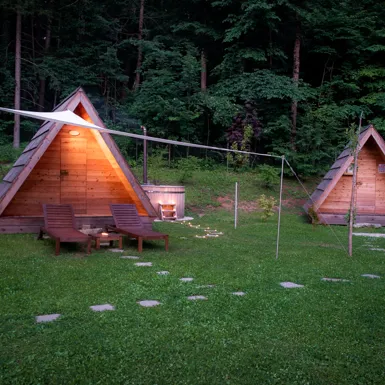 V ljubkih lesenih hišicah spanje v naravi dobi nov pomen. Hiške so zgrajene iz ekološkega neobdelanega macesnovega lesa in krite z macesnovimi skodlami. Udobna postelja je narejena iz povsem naravnih materialov. V hišici diši po lesu. Pred hišico vas vabijo lepo urejena okolica s tipičnim alpskim rastlinjem, lesena kad z ogrevanjem na drva in udobni leseni ležalniki. Pobegnite vsakodnevni rutini in si privoščite oddih v dvoje v Glampingu Gozdne vile!