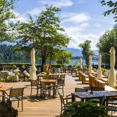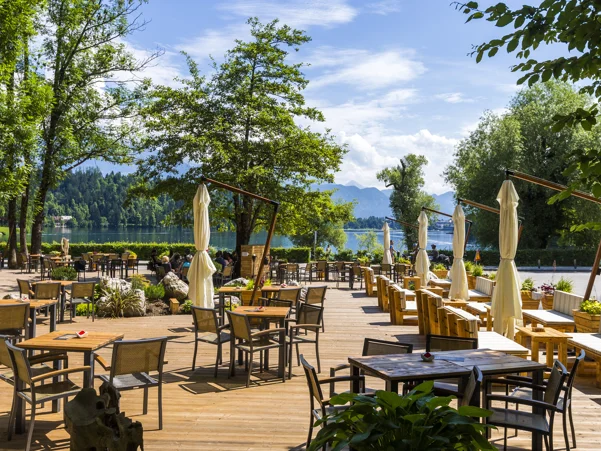 Na vhodu v kamp se nahaja založena samopostrežna trgovina in restavracija z lokalno in mednarodno kulinarično ponudbo, v kateri vam pripravijo tudi obroke, ki jih lahko odnesete in zaužijete v zavetju svoje namestitve v naravi. Kamp vsak dan obišče tudi pek. Na Bledu pa priporočamo Kavarno Park, kjer vam postežejo Originalno blejsko kremno rezino ali odličen naravni sladoled, ponujajo pa tudi raznoliko paleto slovenskih in mednarodnih jedi.