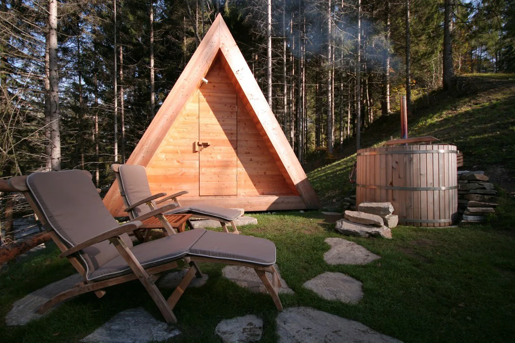 Ljubke, majhne, lesene hišice so idealna izbira, ko želite samo v dvoje malce pobegniti pred norijo vsakodnevne rutine. Spanje v naravi tu dobi nov pomen. Hiške so zgrajene iz ekološkega neobdelanega macesnovega lesa in krite z macesnovimi skodlami. Udobna postelja je narejena iz povsem naravnih materialov. V hišici diši po lesu. Pred hišico vas vabijo lepo urejena okolica s tipičnim alpskim rastlinjem, lesena kad z ogrevanjem na drva in udobni leseni ležalniki.