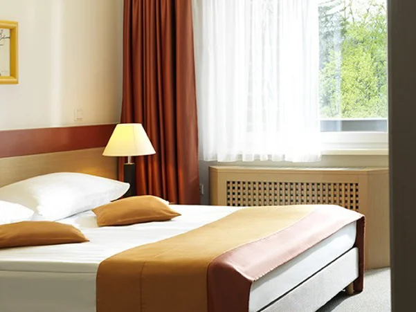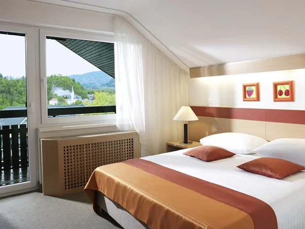 Udobna dvoposteljna soba z balkonom s pogledom na park. V sobi (18 - 20 m2) z dvema ležiščema širine 90 cm ali enim ležiščem širine 180 cm je pisalna miza, televizija, brezplačni WIFI dostop ter kopalnica s tušem in WC.