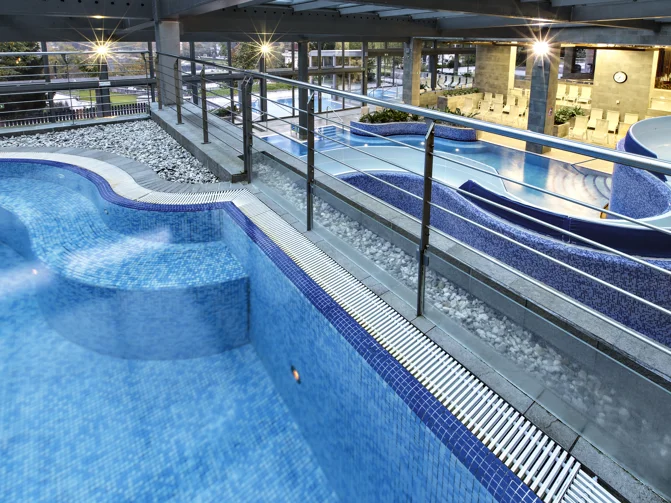 Bazenski kompleks Živa v Rikli Balance Hotelu obsega šest bazenov in notranji tobogan s pogledom na Blejsko jezero. Nad bazensko panoramo boste navdušeni tako mali kot veliki kopalci. Starši se lahko sprostite tudi v masažni kopeli ali ob naših wellness storitvah.