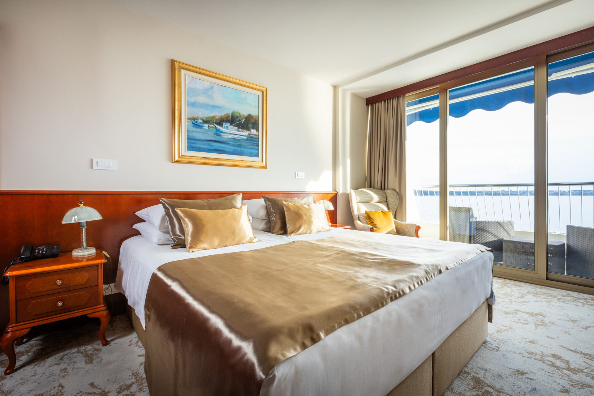 Ponudba v apartmaju: spalnica, predprostor, dnevni prostor, balkon, sef, pisalna miza, mini bar, SAT TV, radio, telefon, kabelski internet, kopalnica z masažno kadjo, sušilec za lase, paket za osebno higieno, kopalni plašč, copati, storitev bujenja/budilka, 24-urna sobna postrežba. Velikost sobe: 64 m2 Velikost postelje: 1 zakonska postelja 200 x 200 cm + dodatno ležišče 140 x 200 cm