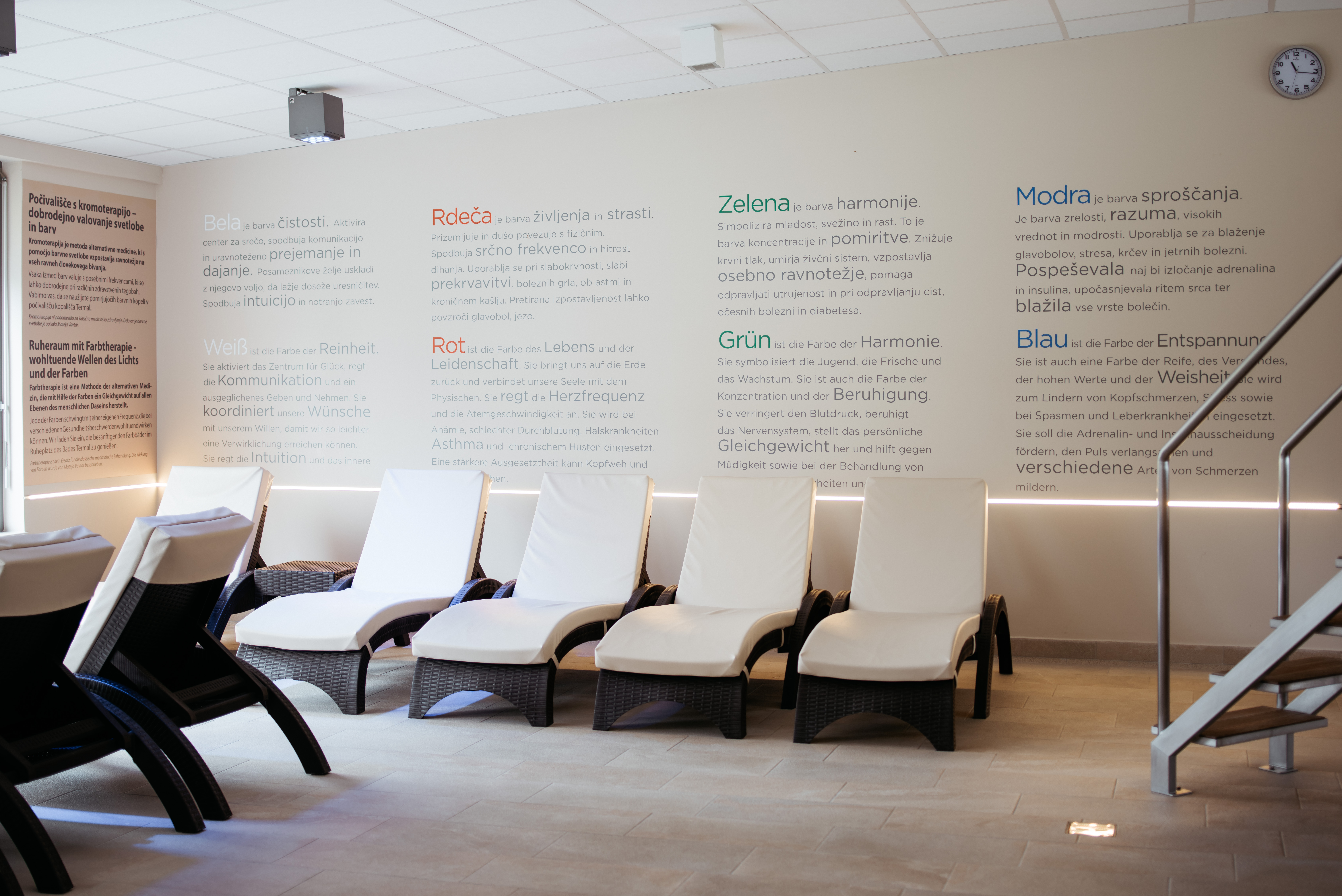 Notranji del termalnih bazenov Hotela Termal združuje pozitivne lastnostni termalne vode, moč kamnin ter kromoterapijo v počivalnici ob bazenu. Pogrejete se lahko v finski savni, se naužijete blagodejne energije kristalov in sprostite s pomočjo barv. Zunaj vas čakata še rekreacijski bazen in kopel s črno termo-mineralno vodo.
