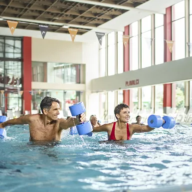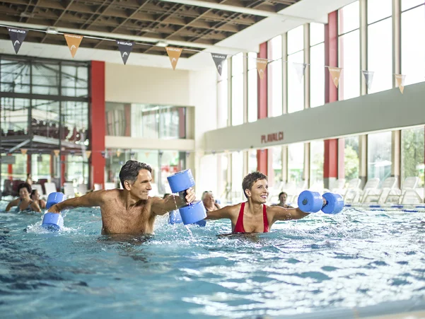 Po jutranji telovadbi v telovadnici in dihalnih vajah se nam pridružite na različnih vodnih vadbah za vse starosti. Lahko pa skočite v 25-metrski plavalni bazen z navadno vodo, ki je kot nalašč za nabiranje plavalnih kilometrov.